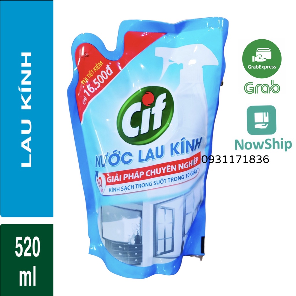 (MỚI) CIF NƯỚC LAU XỊT KÍNH DẠNG TÚI Tiết Kiệm 520ml xanh dương 520 ml free ship